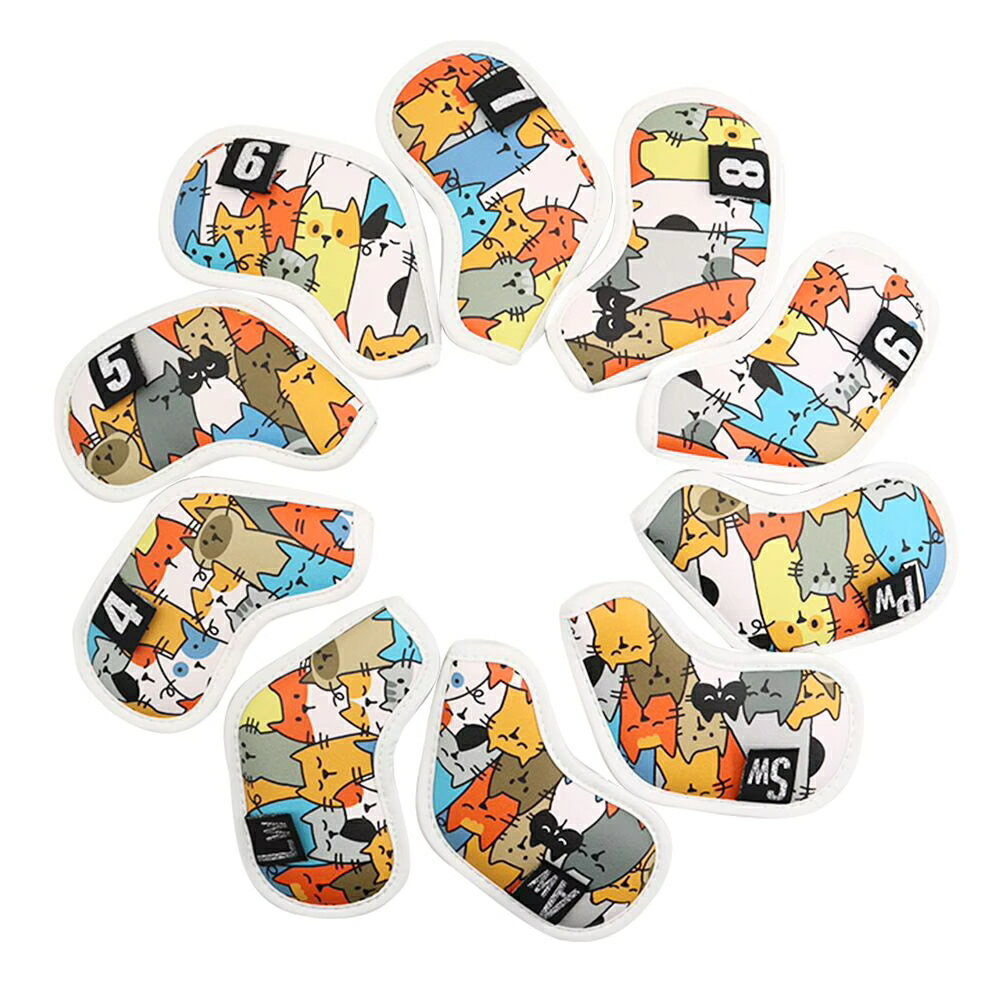 【メール便配送無料10個セット】 高級PUレザー アイアン ヘッドカバー 猫 ネコ アニマル 動物 かわいい 景品 ギフト コンペ プレゼント CBA075 【ゴルフ】