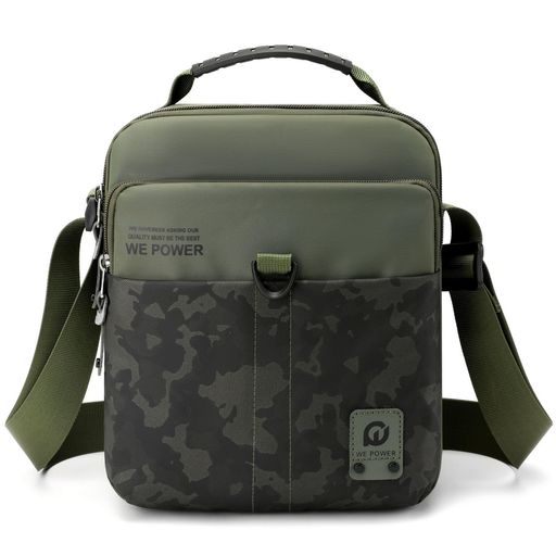 [maruno]ショルダーバッグメッセンジャーバッグろうけつ染め帆布10インチ9ポケット多機能収納防水2way通勤通学旅行アウトドア”カーキ色