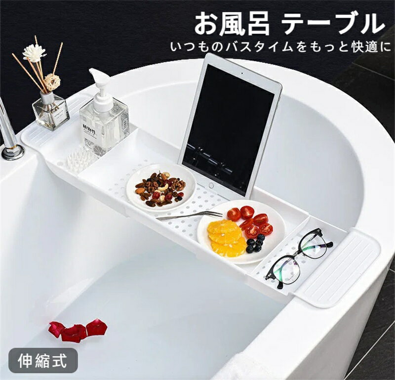 バスタブトレー お風呂 テーブル おしゃれ 机 収納 スマホ 伸縮式 バステーブル お風呂トレー 大容量 水切りかご タブレット スマホスタンド 浴室 おもちゃ収納