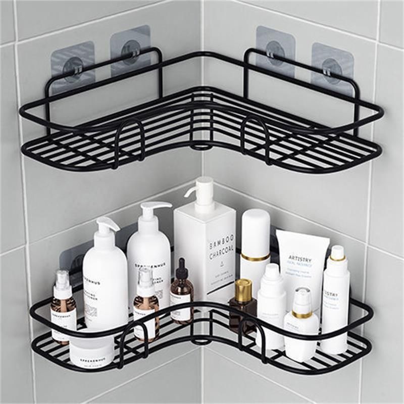 - 壁掛けシャワーキャディラック シャワーキャディ 錆びないゴールデン バスルーム収納バスケット 2段コーナーシェルフ シャワーアクセサリー シャワージェム シャンプーホルダー 三角形