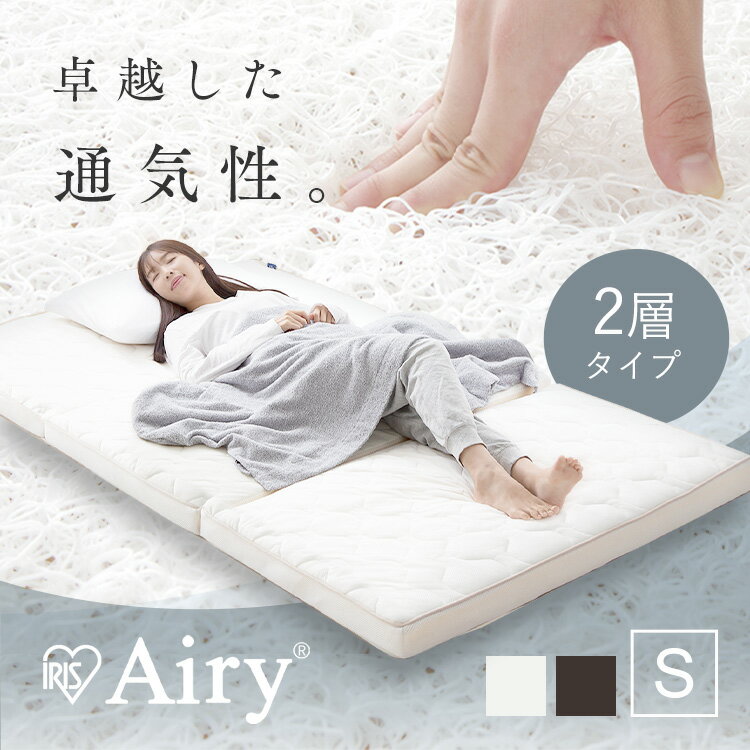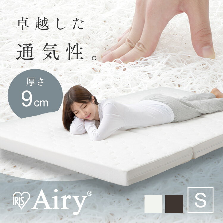 - マットレス 折りたたみ コンパクト シングル エアリーマットレス 六つ折り 厚さ5cm 高反発 抗菌 防臭 体圧分散 通気性 メッシュ 敷布団 ベッドマット アイリスオーヤマ