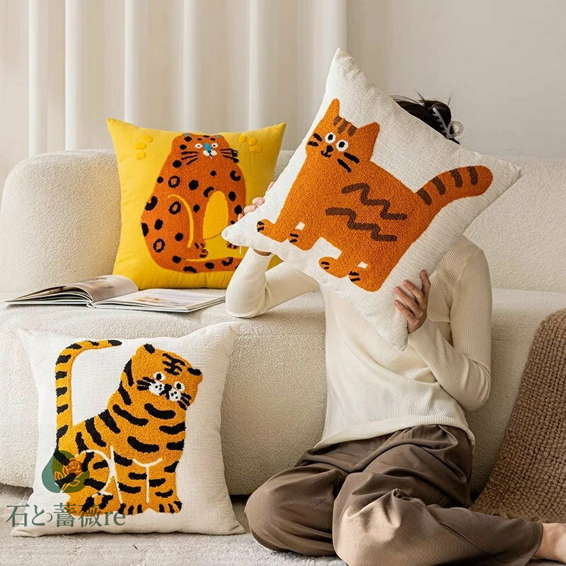 送料無料 クッションカバー 抱き枕カバー 45*45cm 高級感 座布団カバー 動物柄 虎 豹 猫 犬 背当てカバー 角型 四角 無地 シンプル 高級感 在宅勤務 マルチカ..
