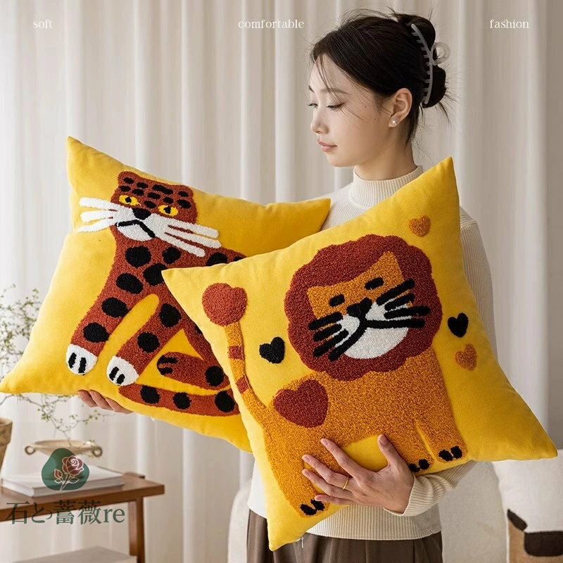 送料無料 クッションカバー 抱き枕カバー 45*45cm 高級感 座布団カバー 動物柄 豹 ライオン 背当てカバー 角型 四角 無地 シンプル 高級感 在宅勤務 マルチカ..