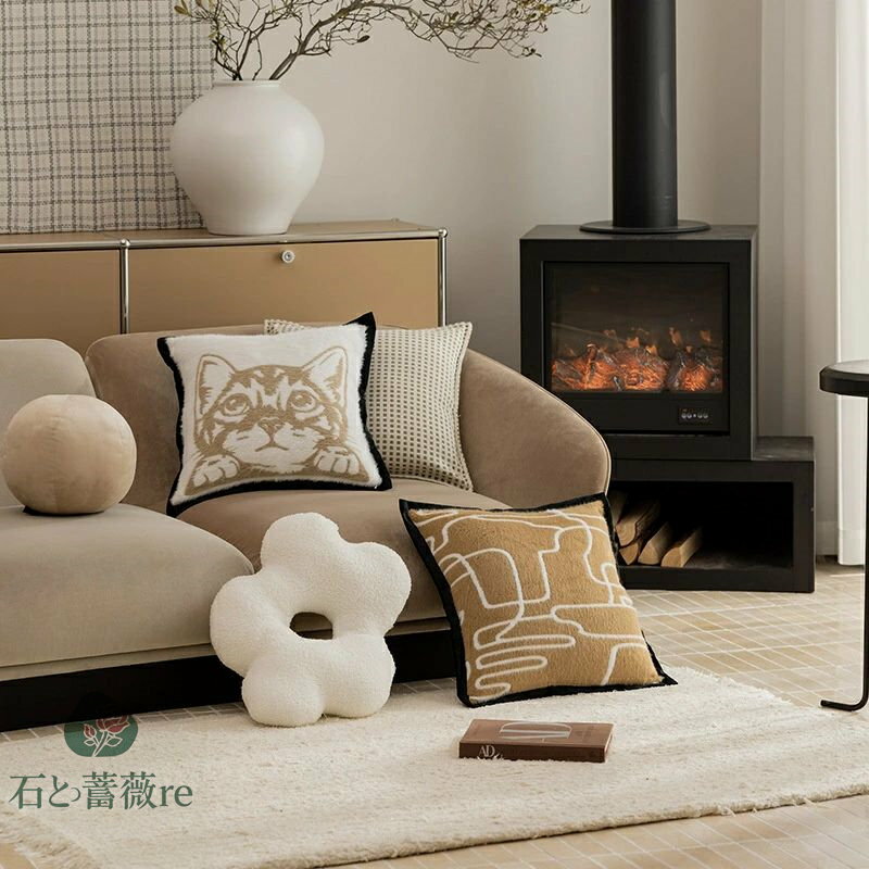 送料無料 クッションカバー 抱き枕カバー 45*45cm 座布団カバー もこもこ 猫柄 CAT 現代風 背当てカバー 角型 四角 無地 シンプル 高級感 在宅勤務 マルチカラ..