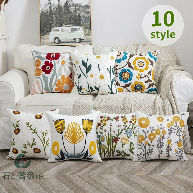 送料無料 クッションカバー 抱き枕カバー45cm×45cm 座布団カバー 刺繍柄 背当てカバー 花柄 角型 四角 無地 シンプル 高級感 在宅勤務 マルチカラー 一人暮ら..