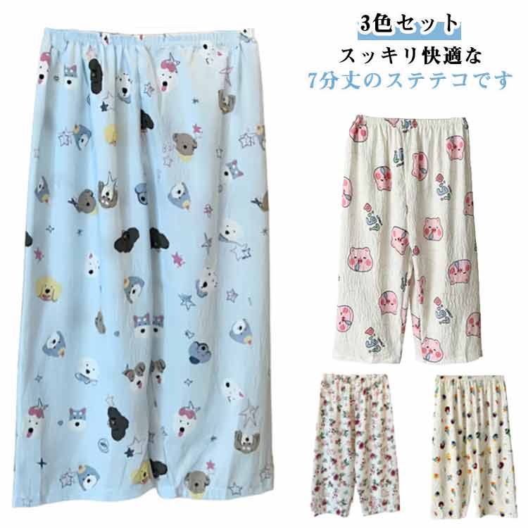 3色セット ステテコ レディース ハーフパンツ 7分丈 ルームウェア おしゃれ ウェストゴム 部屋着 ショートパンツ ルームパンツ