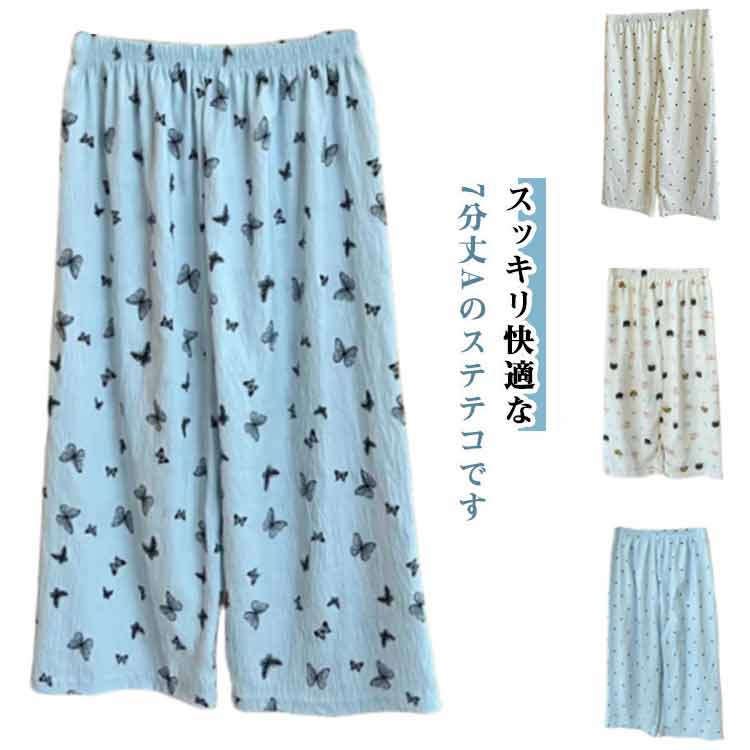 おしゃれ 春夏 ルームパンツ ルームウェア レディース 部屋着 ハーフパンツ 7分丈 コットン ひざ下 綿 イージーパンツ ワイドパ