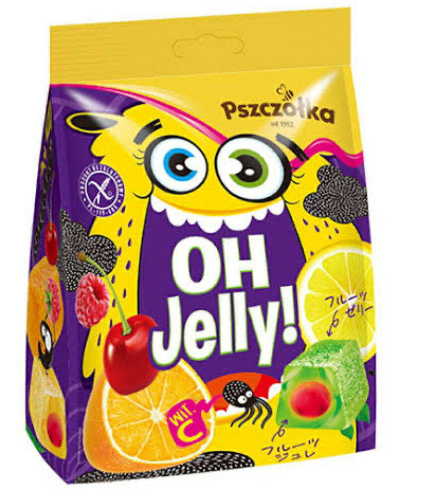 - センターに食感の異なるラズベリーフィリングを閉じ込めた、レモン、オレンジ、チェリー、青りんご果汁を使用した4種アソートゼリー。