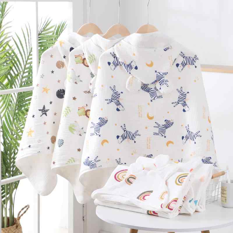 バスタオル ベビー キッズ 四重ガーゼ コットン100% 軽量 速乾 ふわふわ フード付き ポンチョ ケープ キャラクター アニマル柄 お風呂 プール 水遊び用 70x140cm