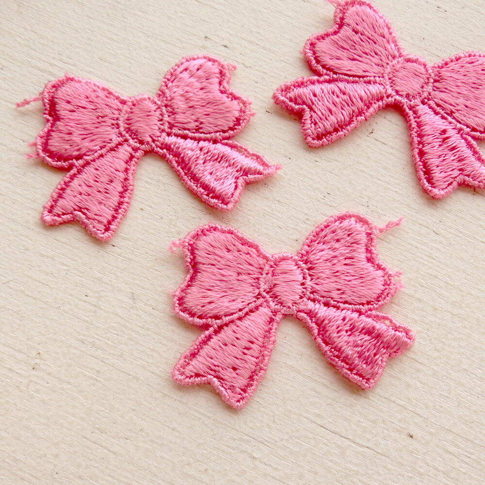 - ハンドメイド 手芸材料 工作 DIY 手作り クラフト 布小物のワンポイントにもおすすめ! アップリケ レースモチーフ リボン ピンク カラーレース