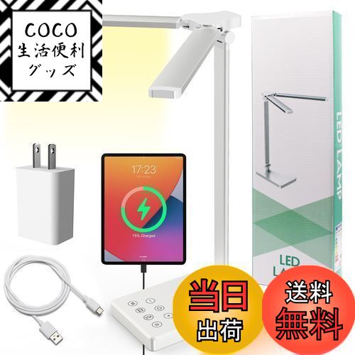 【送料無料】デスクライト led 勉強机 明るい 550lm 幅広 調色5段階 無段階調光 間接照明 ACアダプター付き 電気スタンド led スタンドライト 卓上 アーム調整..
