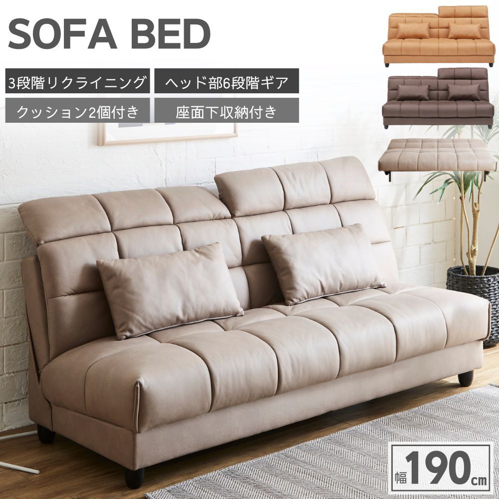選べる開梱設置 ソファーベッド ソファー 3人掛け 収納付き ハイバック 肘なし 座面 広い 合皮 リクライニング ローソファー カウチソファー ヘッドギア クッ..