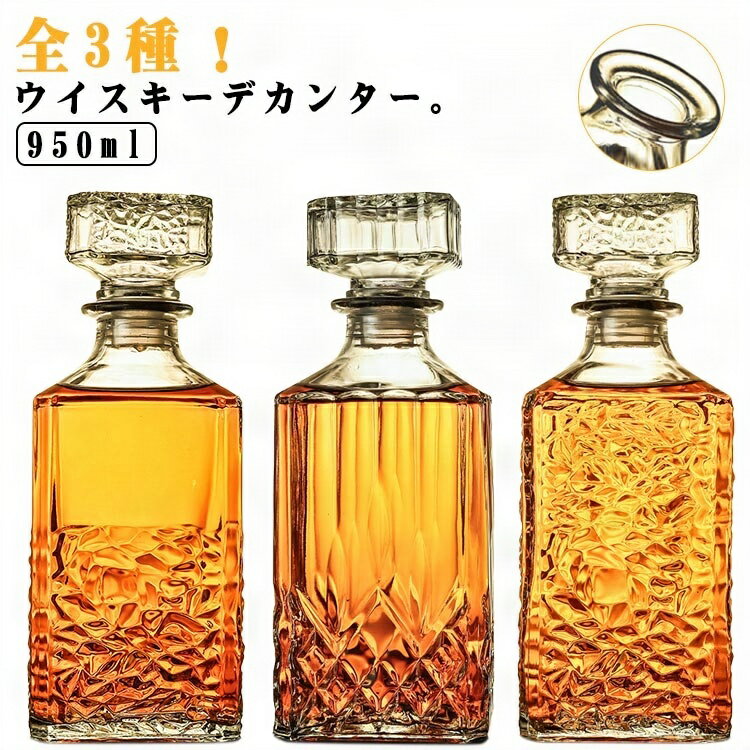 ウイスキーデカンター 蓋付き スクエア ガラス 950ml 大容量 クリスタル ストッパー付き プレミアム ブランデー デカンタ デキャンタ ウイスキーデカンタ アル..