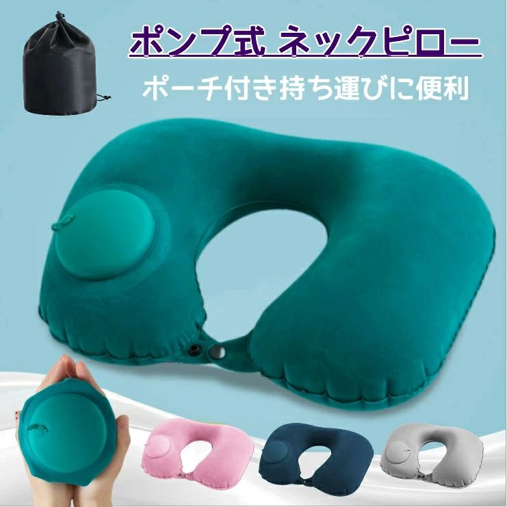 まくら 収納ポーチ付 海外旅行 バス 飛行機 ねっくぴろー 旅行 エアーピロー 携帯枕 枕 洗える 首枕 u型 ポンプ式 ネックピロー