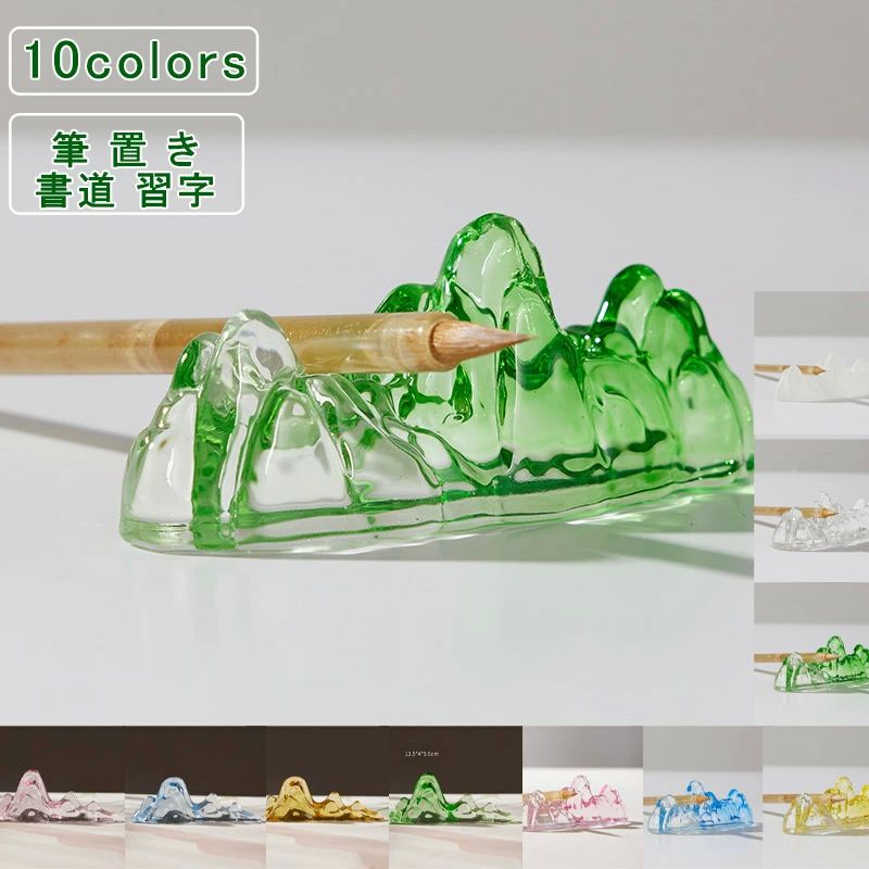 筆置き ガラス 山 文鎮 ホルダースタンド 毛筆 書道 習字 和風 絵画 小物 置物 道具 日用品 文房具 工芸品 おしゃれ きれい プレ