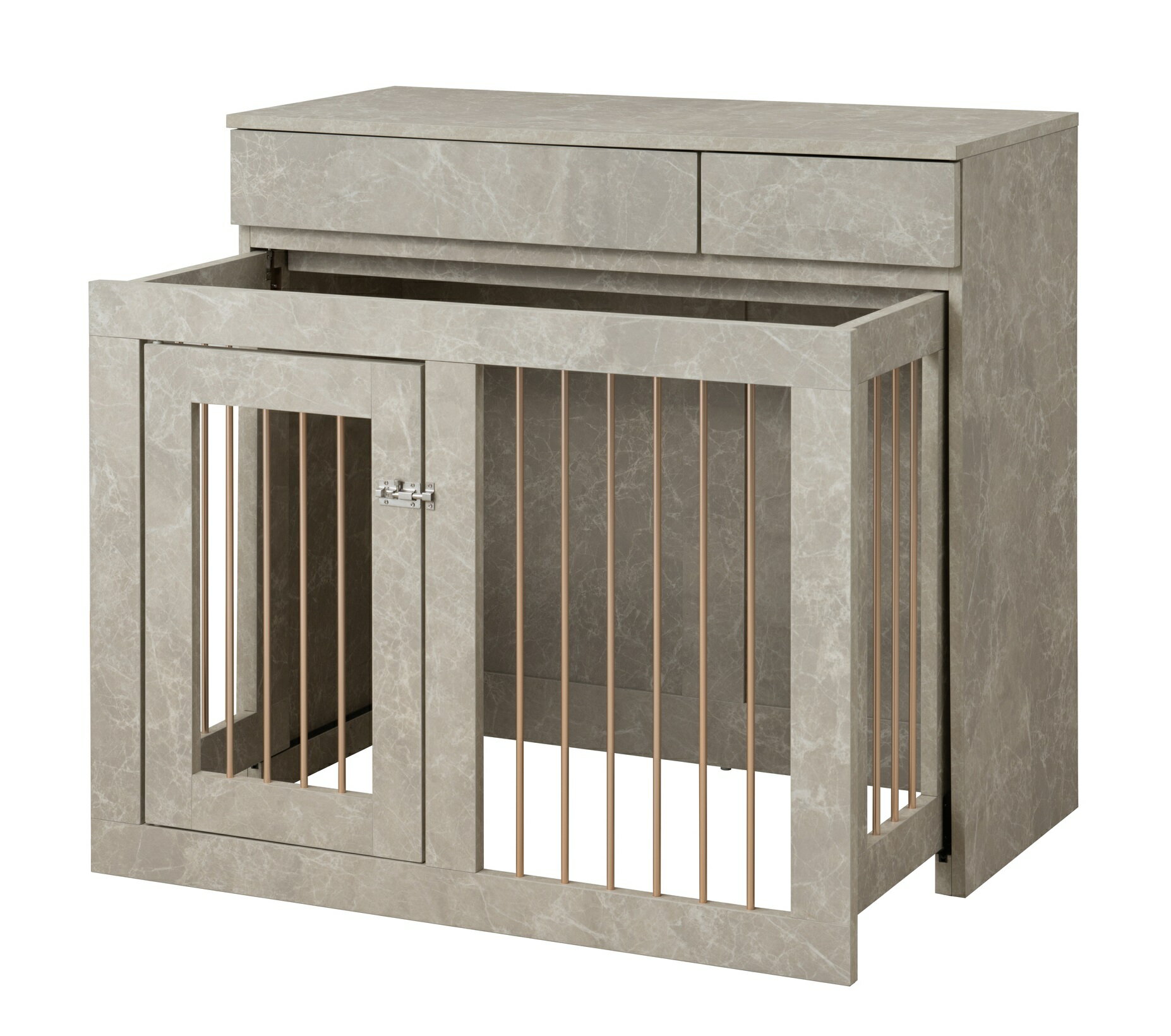 優雅な大理石調シリーズ ペットケージ 幅90cm 収納付きスライド収納型ケージタイプ 奥行40cm JOLI 大理石調