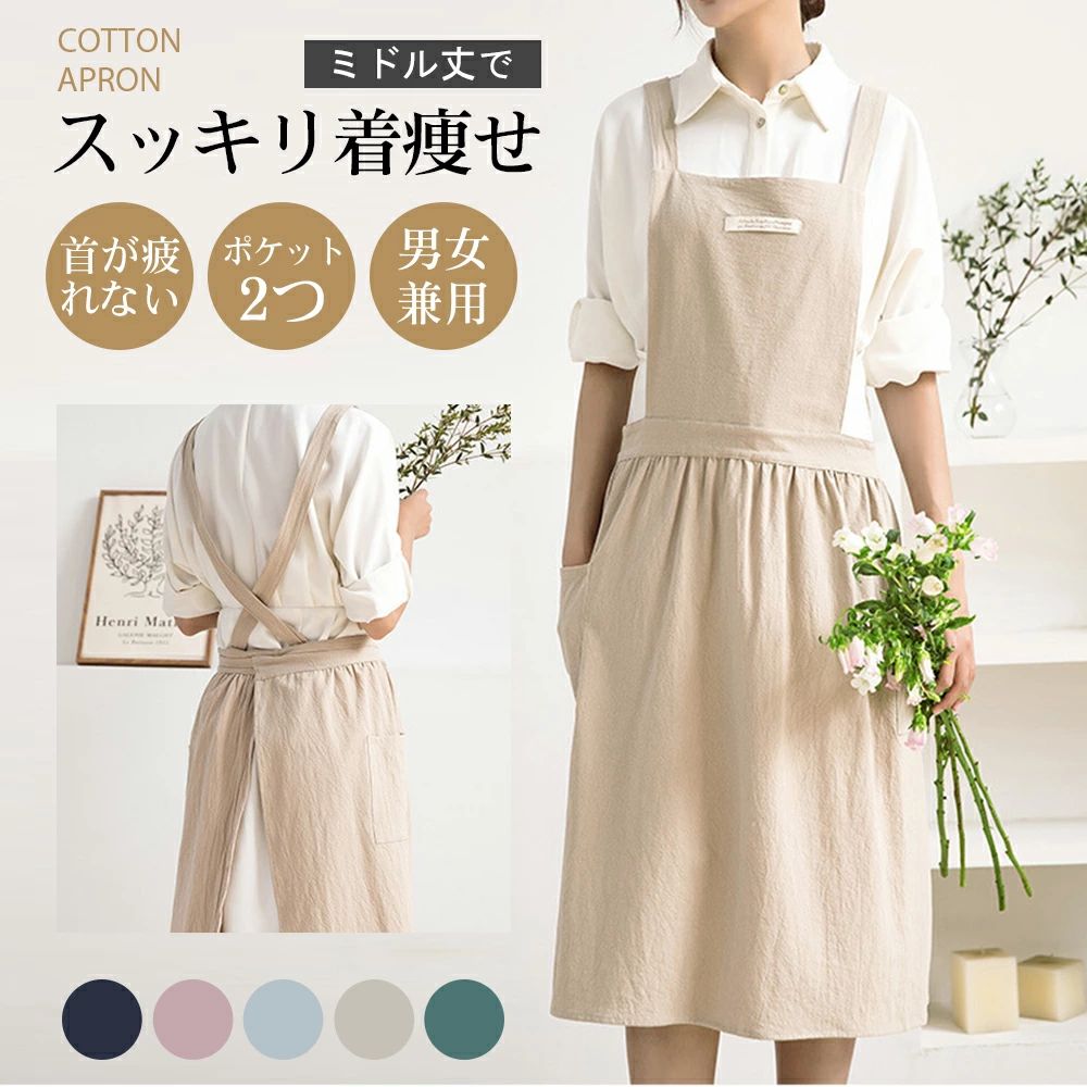 【翌日発送】エプロン おしゃれ 保育士 かわいい ワンピース 大きいサイズ 北欧 カフェ 保育士 シンプル ナチュラル 無地 ユニフォーム コットン 綿麻 習い..