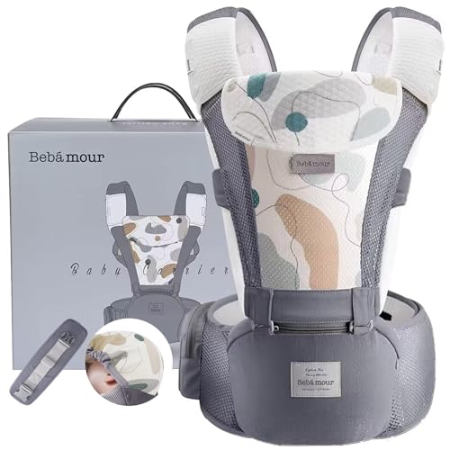 【ベビーアムール】Bebamour 抱っこひも ヒップシート 軽量 通気メッシュ ベビーキャリア 前向き抱っこ おんぶ 6way ウェストキャリー 快適(グレー)
