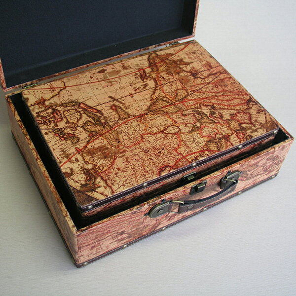 - ウッドボックス 小物入れ 収納箱 店舗ディスプレイ 古代地図 木製 インテリア雑貨 おもちゃ箱 アンティーク