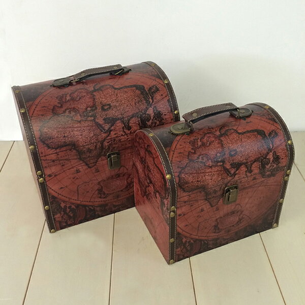 アンティーク風 2点セット ウッドボックス 小物入れ 店舗ディスプレイ メルカトル図 木製 収納箱 小物入れ インテリア雑貨 おもちゃ箱 アンティーク インダス..