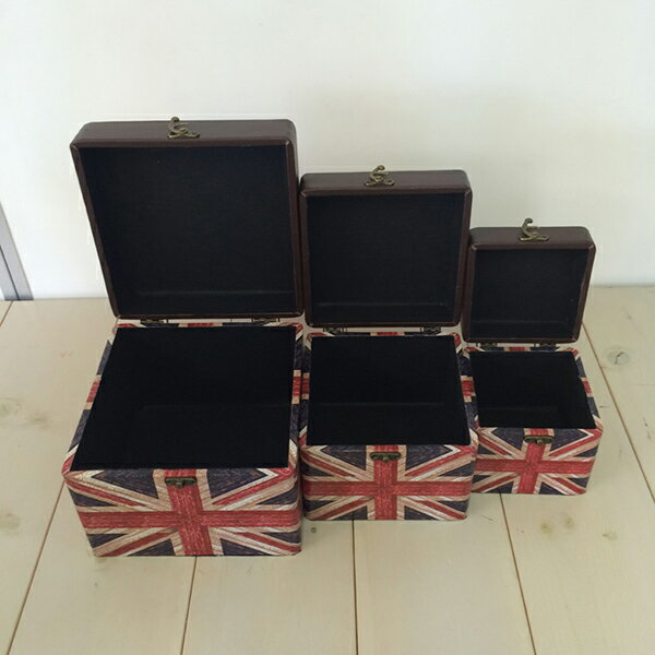- アンティーク風 四角型ボックス 小物入れ 店舗ディスプレイ ユニオンジャック 木製 インテリア雑貨 おもちゃ箱 アンティーク