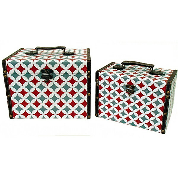 ウッドボックス 2点セット トランク型ボックス かわいい小物入れ 収納箱 店舗ディスプレイ 木製 インテリア雑貨 おもちゃ箱 アンティーク インダストリアル 西..
