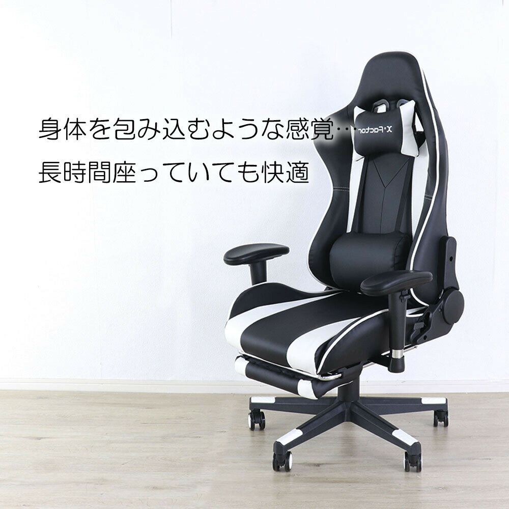 ゲーミングチェア フットレスト付 (ホワイトライン) パソコンチェア オットマン付き PCチェア 在宅ワーク クッション性 オフィスチェア デスクチェア 書斎チェ..