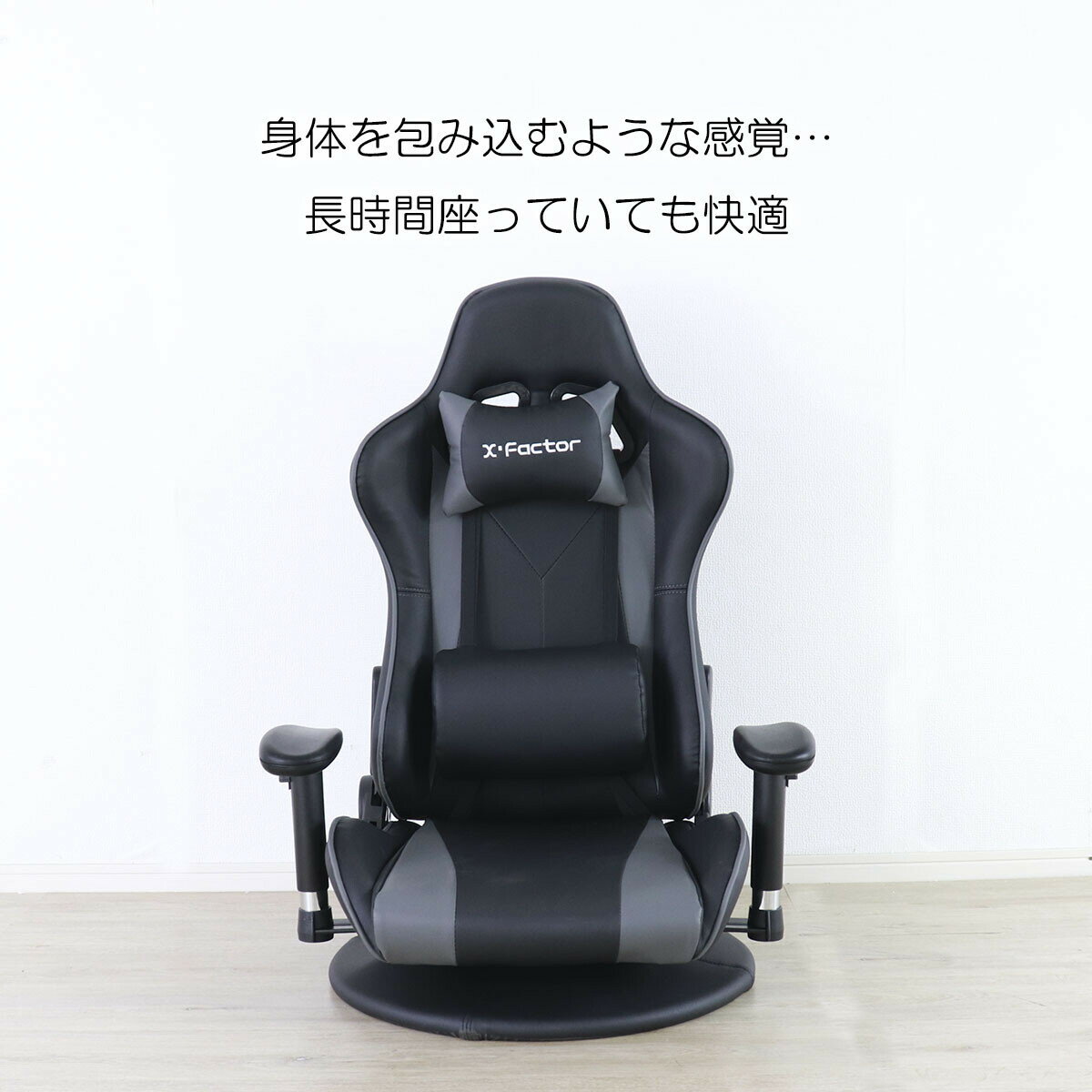 ゲーミング座椅子 ゲーミングチェア (グレーライン) 360度回転 リクライニング フロアチェア あぐら クッションアーム ひとり暮らし おしゃれ かっこいい リモ..