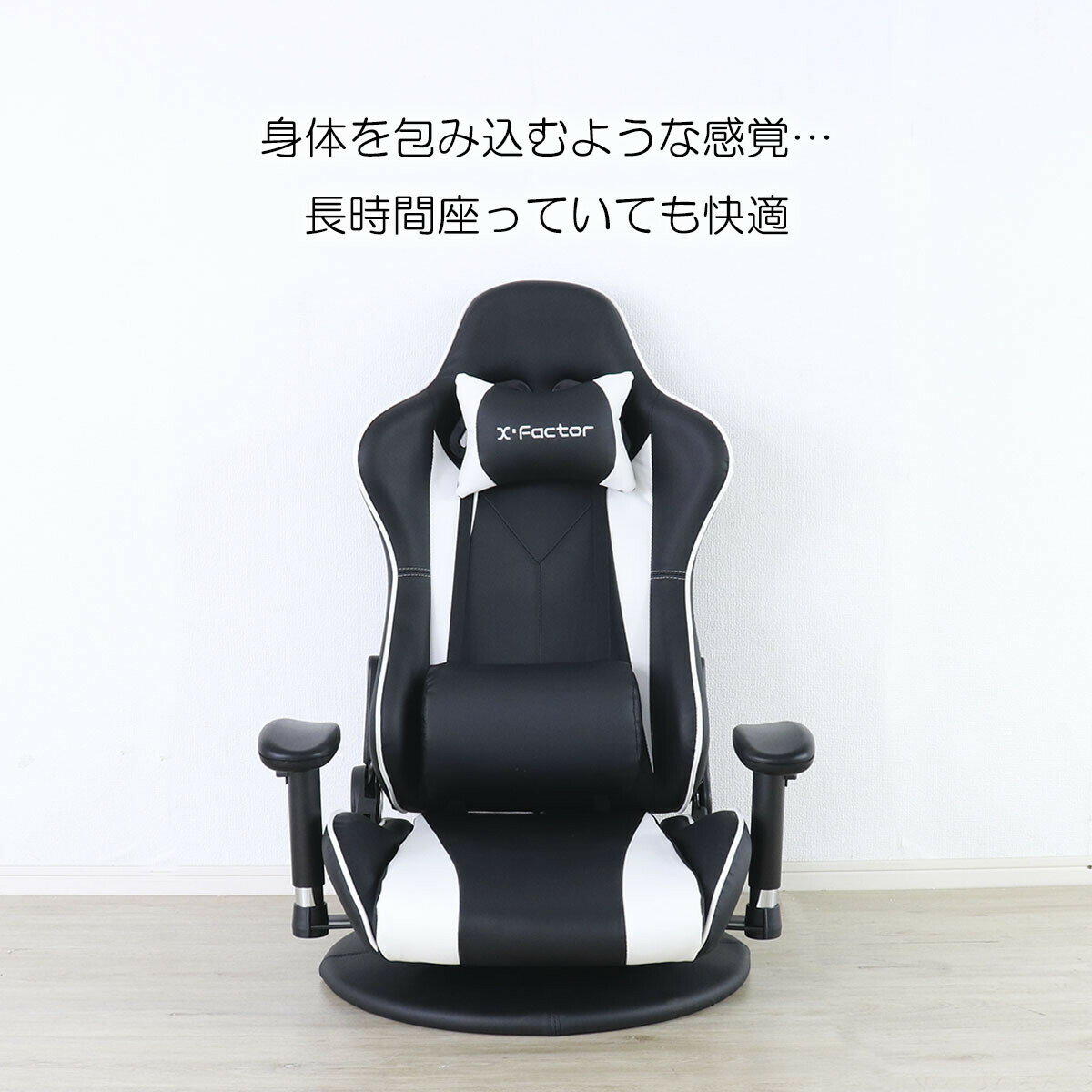 ゲーミング座椅子 ゲーミングチェア (ホワイトライン) 360度回転 リクライニング フロアチェア あぐら クッションアーム ひとり暮らし おしゃれ かっこいい リ..