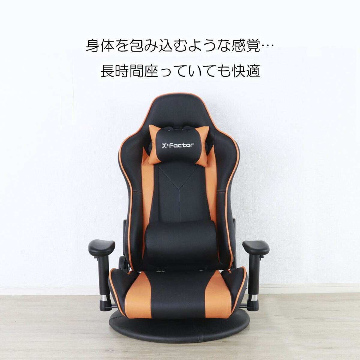 ゲーミング座椅子 ゲーミングチェア (オレンジライン) 360度回転 リクライニング フロアチェア あぐら クッションアーム ひとり暮らし おしゃれ かっこいい リ..
