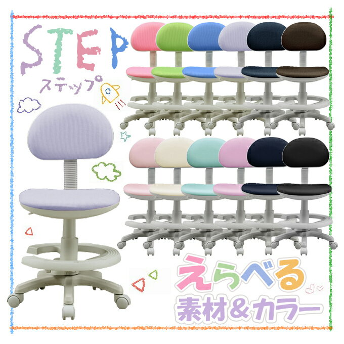 学習回転チェア ステップ7 素材とカラーが選べる 全12色 脱着式足置きリング ファブリック/合皮 無地/PVCレザー 学習チェア/回転チェア/勉強椅子/学習椅子/キ..