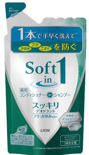 【合算3150円で送料無料】ソフトインワン シャンプー スッキリデオドラントタイプ つめかえ用 370ml