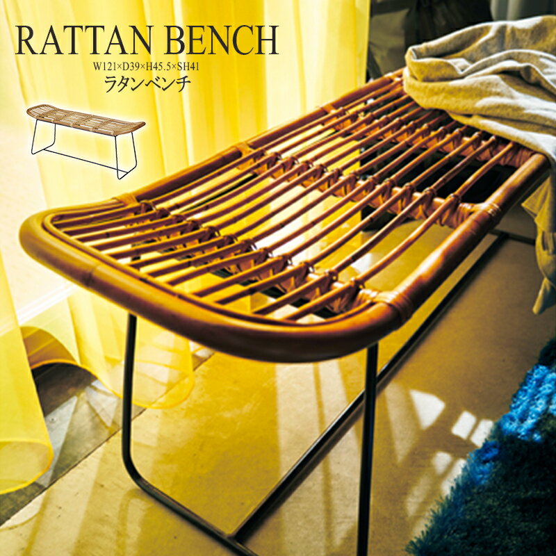 完成品 ダイニングベンチ 幅121cm 2人掛け 食卓椅子 チェアー チェア ダイニングチェアー イス 椅子 ラタン アイアン 二人掛け 2人掛け ベンチチェア 北欧 お..