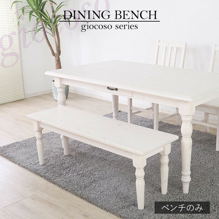 ダイニングベンチ (ホワイト) 長椅子 ロングチェア おしゃれ 北欧 シャビーシック フレンチカントリー かわいい 白家具 木製 姫系 シャビーシック レトロ デザ..
