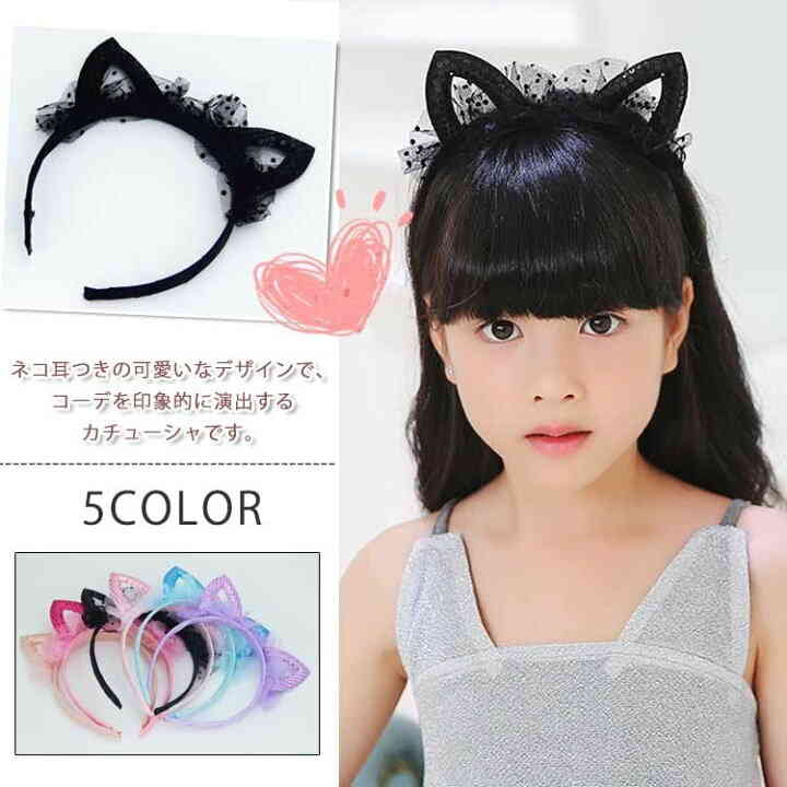 送料無料ネコ耳つきの可愛いなデザインで、コーデを印象的に演出するカチューシャ キッズカチューシャ 女の子 ヘアアクセサリー チュール キュート スウィート..