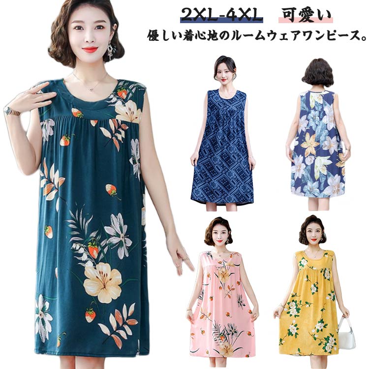 レディース 夏 ワンピース ルームワンピース 寝間着 ノースリーブ ルームウェア 花柄 部屋着 夏用 ロングワンピース リラックス