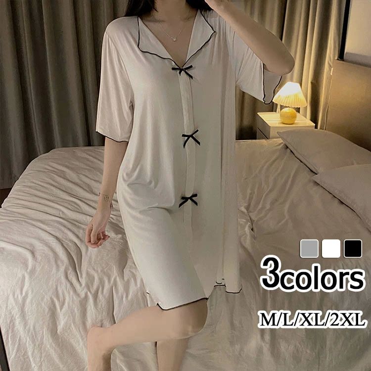- 無地 パジャマ 春 夏 リラックス 部屋着 ルームワンピース 夏場