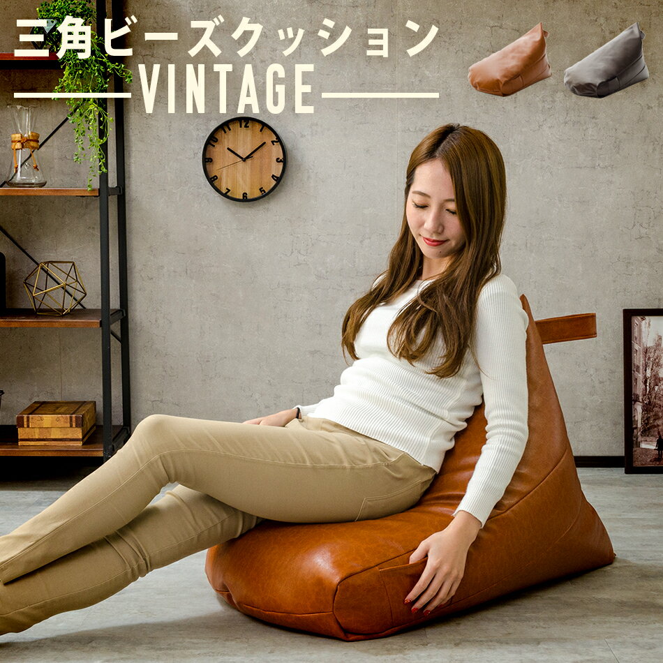 ビーズクッション 三角 ヴィンテージ 背もたれ おしゃれ フロアクッション シンプル ギフト プレゼント コンパクト 日本製