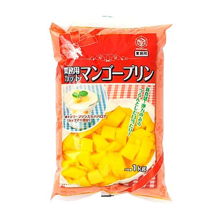- マンゴーピューレで作った爽やかなトロピカルデザートを食べやすい大きさにカットしました。