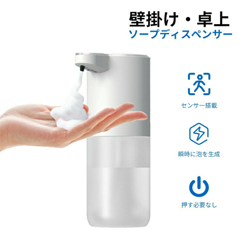 泡 泡タイプ オートディスペンサー IPX5防水 400ML大容量 卓上置き 壁掛け オートセンサー 吐出量2段階調整 0.25秒反応 詰め替え