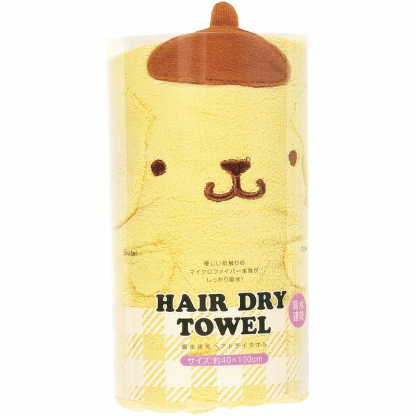 サンリオキャラクターズ グッズ タオル ギフト ポムポムプリン 吸水速乾 子供 キッズ 幼児 園児 幼稚園 学校ヘアドライタオル マイクロファイバー お風呂 プー..